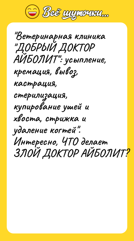 После прочтения анекдота возникает вопрос о том, чем занимается "ЗЛОЙ ДОКТОР АЙБОЛИТ".